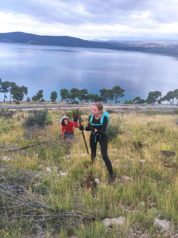 Započeli smo izlet našim uobičajenim skupljanjem i podjelom u kombije te smo se odvezli na Jelinjak. Ovaj neplanirani izlet zapravo je bio samo zamjena za turu na Velebitu koju smo morali odgoditi radi kiše. Kada su nas pitali bi li rađe išli saditi šumu il tumarati po Boraji naravno da smo svi jednoglasno stavili onaj emotikon drveta, zasukali rukave i primili se novog izazova. (Također mislim da ni Marini ni Svjetlani nije bilo krivo poslati nas u radnu akciju)