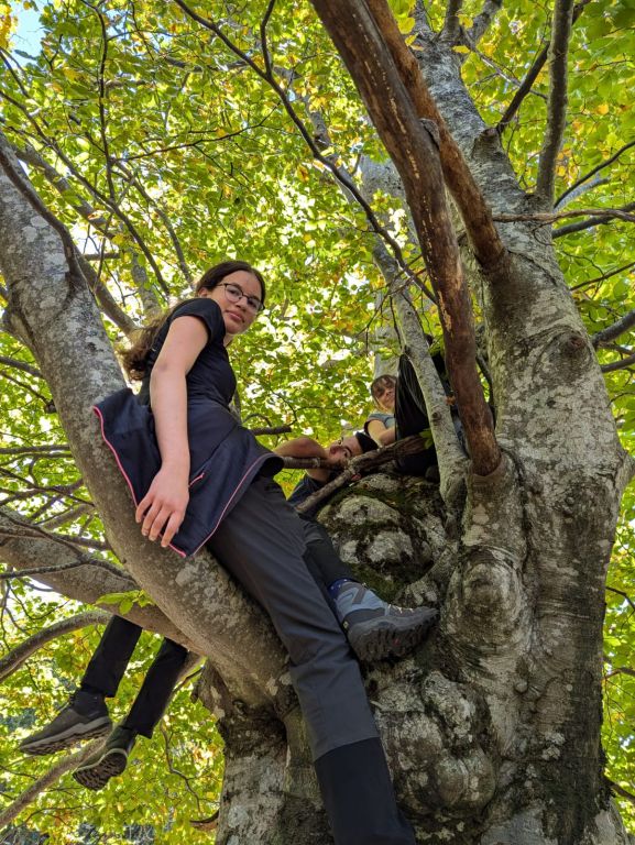 Glad nas je mučila pa smo na sljedećoj pauzi usred rute nešto gricnuli. Neki su čak izvukli goleme sendviče, spremni pojesti i medvjeda usudi li se naići! I iako nas je glad gnjavila, i noge su nam razmišljale o odustajanju, nastavili smo. Sve je bilo lakše kad bismo se ogledali oko sebe. Šuma je bila tako gusta, tako predivna. Krošnja je šuštala nad nama, gazili smo po vlažnom lišću. Pozdravili smo gljive koje su rasle iz ležećih debla, nekoliko puta se spotaknuli na debele korijene koji su se razlegnuli po stazi.