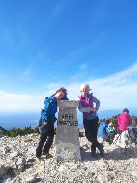 Neću lagati bilo je iscrpljujuće, ali se isplatilo. Popeli smo se na najveći vrh Hrvatske. Osjećaj je bio savršen, svjež zrak i pogled samo su doprinijeli dojmu. Na vrhu samo se slikali i nešto sitno pojeli pa smo se uputili prema skloništu. Silazak je bio za tisuću puta teži od uspona. Morao si se koncentrirati na svaki korak, a kao šlag na torti Emanuel nas je uvjeravao da je vidio zmiju srećom to je bila samo gušterica. Kada samo došli do skloništa jedni su se odmarali i čekali da roštilj bude gotov dok su drugi polagali čvorove. Nakon što ih je većina položila čvorove imali samo ručak.