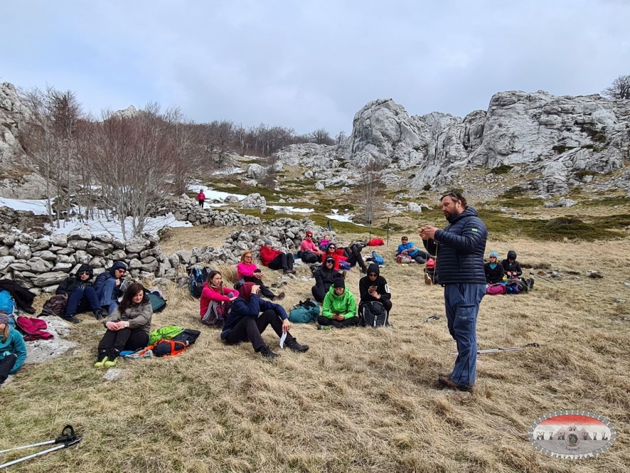 Muškovci – jama Mamet – Vilenski kukovi – Panoga – Sandalj kuk, jugoistočni Velebit je bio naša planinarska destinacija za treći tjedan škole. Velebit ima toliko lica da jedan ovozemaljski život nije dovoljan da ih sva upoznate. Za one kojima još malo treba da im se Velebit mapira u sjećanje, Vilenski kukovi se nalaze između Tulovih greda i Crnopca. Školarci, vodiči, iskusni planinari, njihovi potomci i kućni ljubimci (nije baš najprikladniji pridjev za te zvijeri od pasa), svi smo mi krenuli na izlet s nadom u prognozu bez padalina. Vila Velebita, našeg roda dika, Vilinska vrata, Vilenski kukovi… puste vile po Velebitu, pa se mislim jesu li nam one možda podarile još jedan suh dan na planini. Imali smo sreće jer ima vila koje nisu tako dobre, Bereginje po slavenskoj mitologiji uništavaju ljude u šumama. Ne damo se mi, krećemo u punoj spremi, prolazimo ne baš zanimljivim makadamom, stočarskim stazama, markiranim stazama, pašnjacima, gledamo Ražov kuk, Mošo objašnjava kako se na poljima točno ispod kuka prije sijala raž. Polja su danas pusta, od raži je ostala samo raž u imenu kuka. Nastavljamo dalje kroz carstvo kukova, greda, procjepa, jama i stižemo i do jame svih jama.