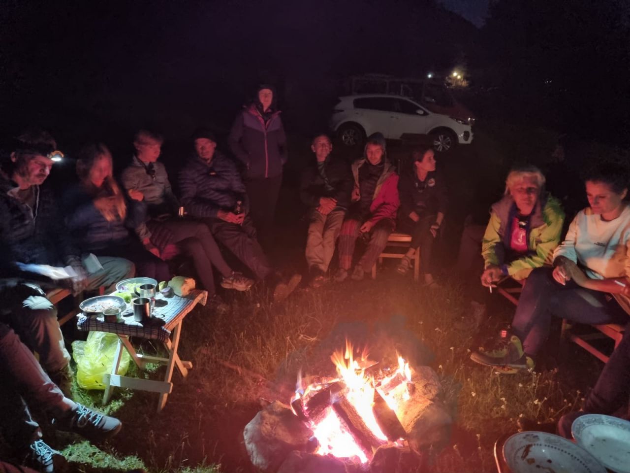 Kako nas je bilo puno, razne ekipe planiraju svakodnevno svoje ture. Na kraju dana, oko vatre, slušamo priče i doživljaje grupa s kojima nismo bili na izletu – tzv. razmjena iskustava. Svi su oduševljeni svojim izletima i sretni na kraju dana. Ta količina dobre energije i kvalitetnog umora djeluje iscjeljujući. Taj odmak od svakodnevnice koji ti pruža priroda i planina je sigurno najbolji lijek od stresa. Da se svi doktori toga sjete ( a među Mihovilcima ih ima i to znaju) pacijentima bi prepisivali terapiju boravka u planini, posebno dok kipi ljeto na najjače. U toku boravljenja na Prokletijama proslavili smo i dva rođendana. Brankov i Mirov ( slavljenici rođeni istog datuma, jedan 67., jedne 76. – smiješna slučajnost). Počastili smo se sa 20 kg ukusne nemasne janjetine ispečene u pekari! (e ludila), improviziranim tortama, a imali smo i vatromet. Smiješno mi je kako se uvijek, koliko god bili daleko od civilizacije, nađe neki civilizacijski luksuz kao npr.vatromet. Ne znamo kako su reagirale planinske životinje na ove zvukove ali nismo dobili nikakve primjedbe od njih.