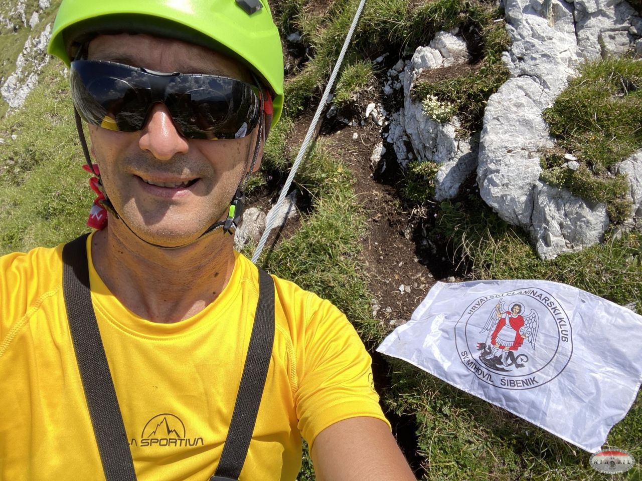 Sretan što sam izašao iz „rupe“ i uspeo još jednu zahtjevnu vertikalu koja je nakon ovog izgledala kao dječja igra, zaboravim se na vrhu uslikati s klupskom zastavom.