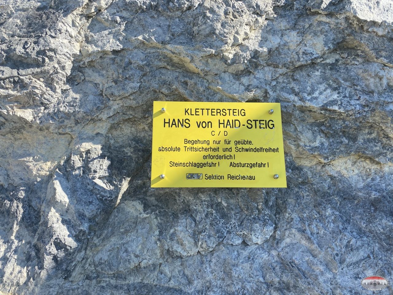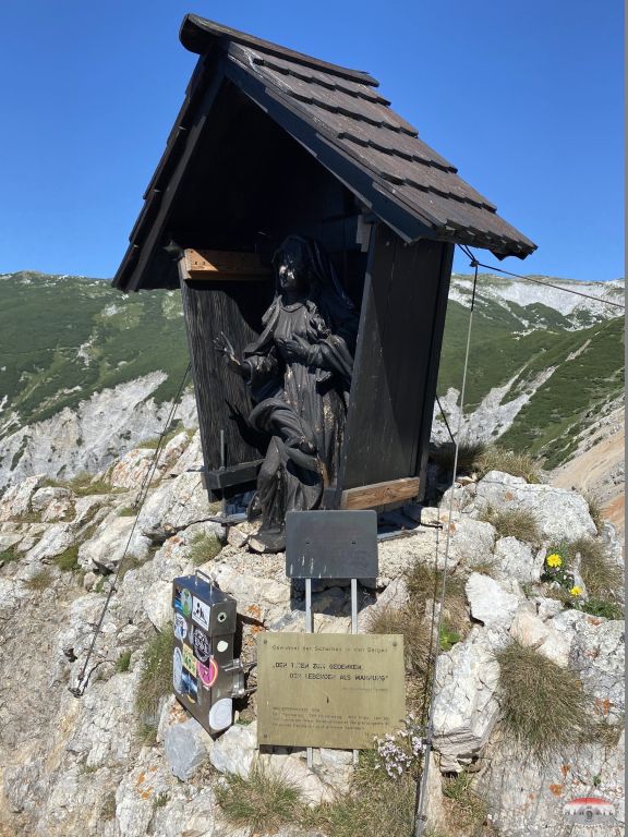 Brzo se pozdravljamo, spremamo opremu i krećemo prema prvoj današnjoj ferati, usponom kroz šumu koji traje oko sat, tako da smo ušli u feratu „Hans von Haid Steig“ oko 9:00. Opet je mala gužva, pa puštamo da ovi ispred malo odmaknu, ali i kako nas je sada petorica i naša se grupa razvukla. Uglavnom, idem prvi, za mnom Bojan i Elvis, a Kristian i Petar pomalo za njima. Sama ferata je dosta uzbudljiva i na par mjesta zahtjevna, s dva vrlo atraktivna detalja čudnih čeličnih ljestava, te jednim jako uskim polukaminom koji je vjerojatno kad je mokro jako sklizak i zahtjevan. Negdje na 2/3 puta je kratki prekid ferate na kojem se nalazi kapelica „Crne Madonne“, tu smo se malo osvježili i krenuli dalje prema vrhu i izlazu iz ferate, gdje smo bili točno u 11:00, znači dva sata za prolazak.