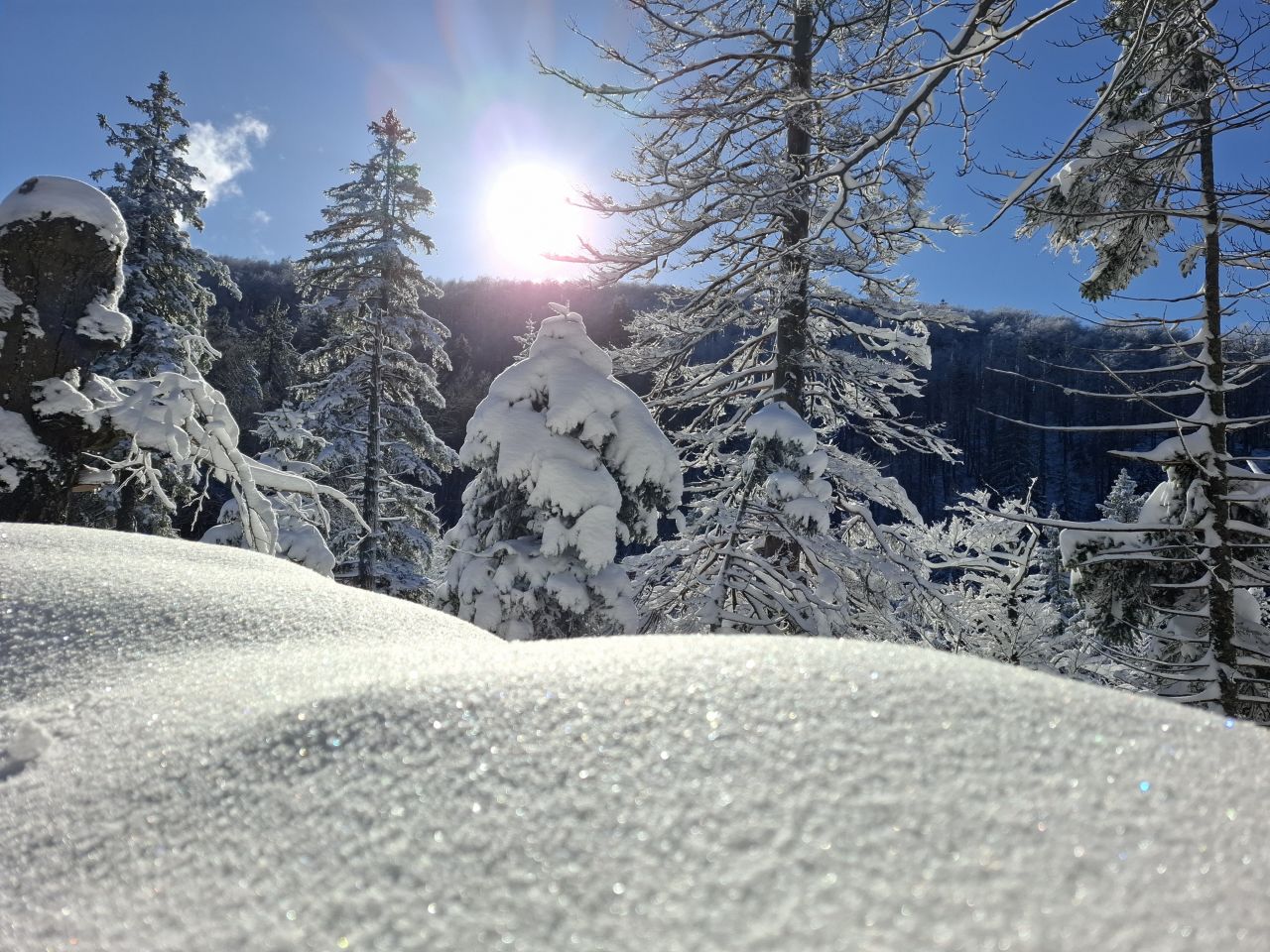 Vremenski uvjeti su nam bili za poželiti. Sunce je obasjavalo nerazgaženi snijeg, a svjetlucajući kristalići leda su samo pojačavali osjećaj zimske čarolije.