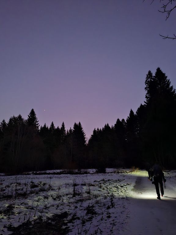 U petak poslijepodne smo krenuli iz Šibenika prema Crnom Lugu, i unatoč najavljenoj orkanskoj buri, zimskim uvjetima na cesti i ljetnim gumama, stigli relativno brzo i bez problema. Od izlaza s autoputa nismo mogli ne biti očarani krajolikom, lokalna cesta od Delnica vodi kroz prekrasnu crnogoričnu šumu prekrivenu snijegom.