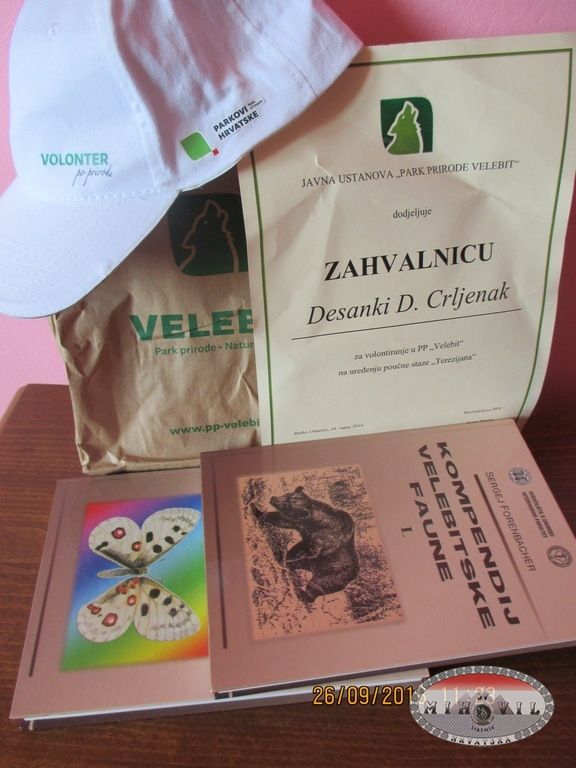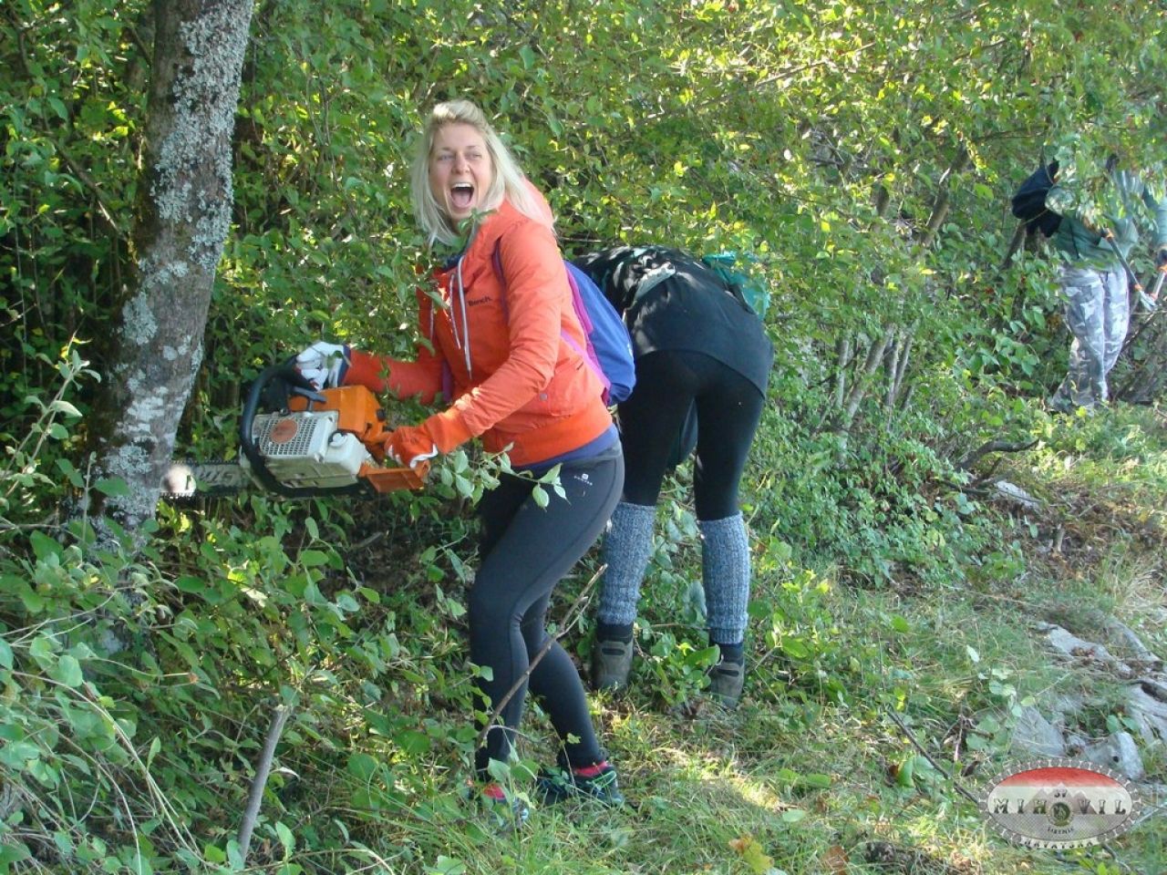 24. ujutro smo se okupili u dvorištu, hvatajući prve zrake sunca. Po dolasku članova NP i voditeljice Ivane Svetić, uzeli svoje sendviče i otišli na doručak u obližnji hostel, gdje smo pozvani kao gosti. Radna akcija je počela podjelom škara i rukavica. Raspoloženi i uz hrpu smijeha i šale čišćenje se odvijalo brzo. I mala Tara je nosila grane, trčkarajući za Totom i malim, seoskim psićem. Čistili smo oko 3-4 km staze od raslinja koje je izraslo na samu stazu, zatvarajući prolaz za hodanje. Naravno, sve biljke s jestivim plodovima smo ostavili stanovnicima šume. U kasno popodne, negdje iza Konjskog, rad je prekinut i autima smo odvezeni u Vilu Velebita na toplu večeru. Organizatori su nam uz riječi zahvale darovali diplomu, kapu i dvije prekrasne knjige o divljim stanovnicima velebitskih šuma(već u njima uživam). Za neke članove zabava je nastavljena u obližnjem Gospiću.