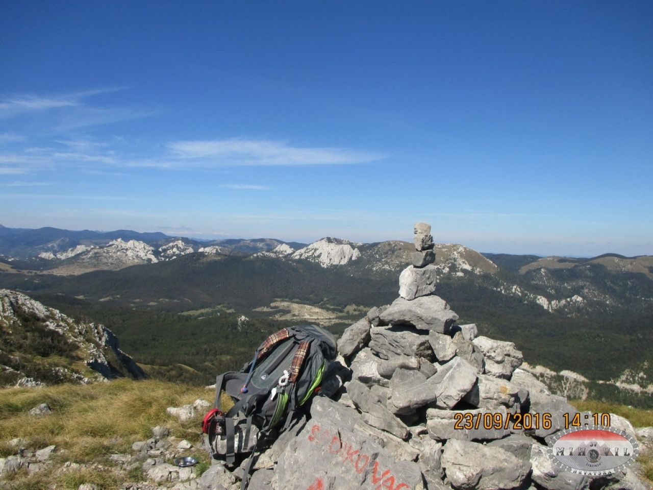 Naredno jutro sam krenula prema Metli 1288m n/v, jer tu nisam bila nikada. Markacija je jako loša, treba biti izuzetno pažljiv da se ne zaluta. Moja prednost su karta i to što sam sama, pa pazim, reče trojka Riječana koja je išla iza mene i zalutala jer su se zapričali. Staza je dosta okomita, no prolazi padinama i bukovom šumom, izlazi na travnati vrh, pa ta ljepota pobija težinu. A s vrha pogled očarava: od Ličke doline pa preko Oštrog Kozjaka i V.Sadikovca do Kize i Dabrova. Na povratku sam pokušala skupiti kamenje u stošcu na par mjesta skretanja i očistiti granje koje zaklanja markaciju.