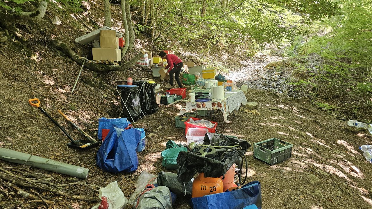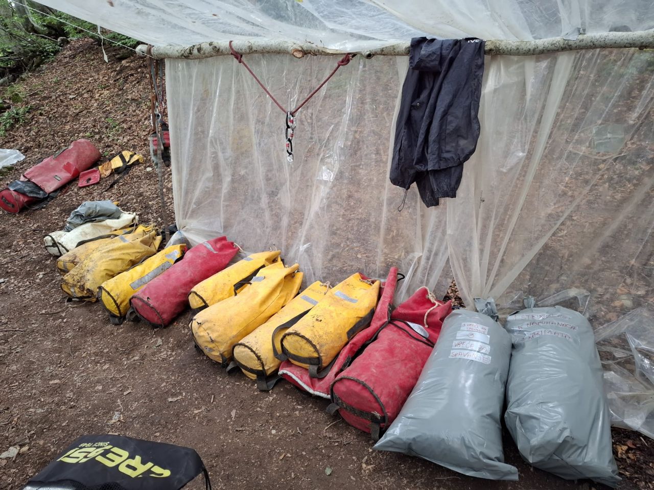 Dva dana prije zvaničnog početka u srijedu, 13. kolovoza je u bazni logor u šumi pod Liscem sa osam terenskih vozila transportirano 3.000 litara vode i dva spremnika za vodu od po tisuću litara, stotine kilograma ronilačke opreme, agregat, motorne pile, dva plinska plamenika i plinski roštilj sa tri plinske boce, solar i akumulatori, materijal za izradu velikih improviziranih šatora i nadstrešnica, kuhinjske potrepštine, gomila hrane te osobne i društvene speleološke kao i opreme za logorovanje. Lavovski dio su odradili pulski, zadarski i mostarski vozači road off iz 4x4 Performance i Krik Seekersa. U logoru je upotrebom Starlink-a omogućen dostupan wi-fi za sve sudionike.
